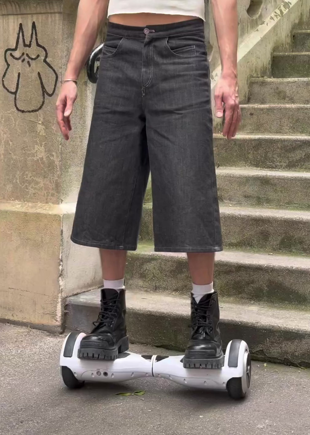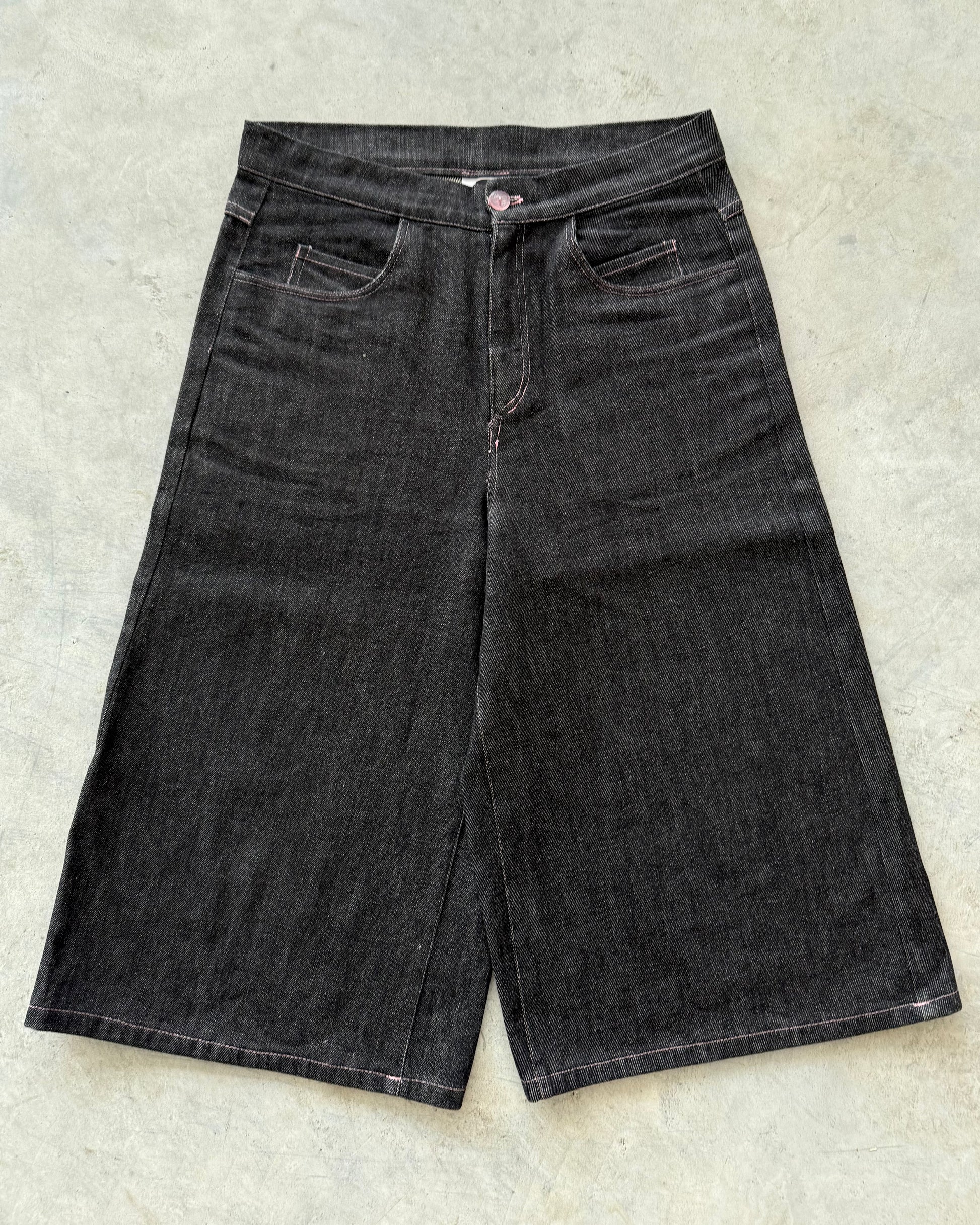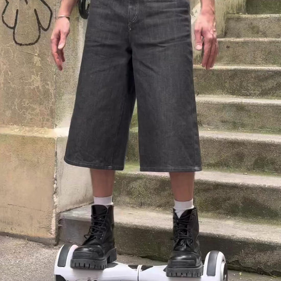 Minimal form, maximum feel. The Soft Black Denim Shorts are cut from a dark-washed stretch denim with a structured yet flexible drape. Made of 90% cotton and 10% elastane, they move with you while keeping a crisp, tailored silhouette. The wide-leg fit drops just below the knee, giving a modern skater-meets-minimalist look.