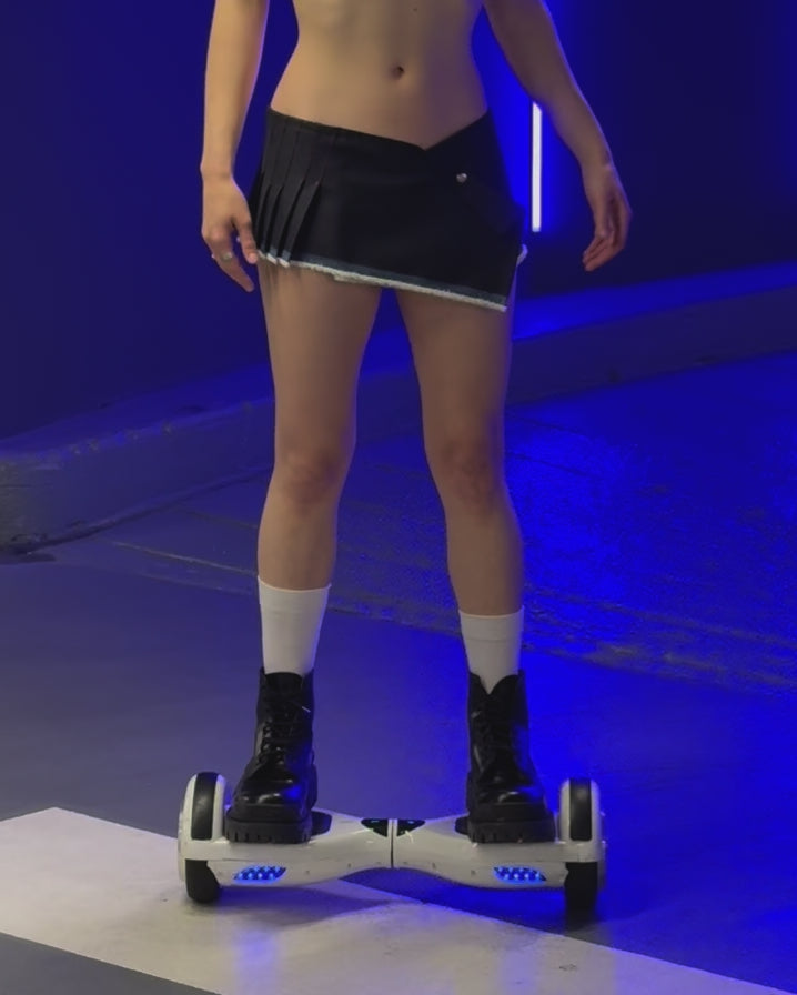 Anarchy in symmetry. The Asym Pleat Skirt reinvents the schoolcore silhouette with a sharply asymmetrical waistband, angled hem, and sharply pressed pleats. Made from the same coated cotton-acrylic blend (70% cotton, 30% acrylic), it features a soft-touch, semi-gloss finish and crisp construction.